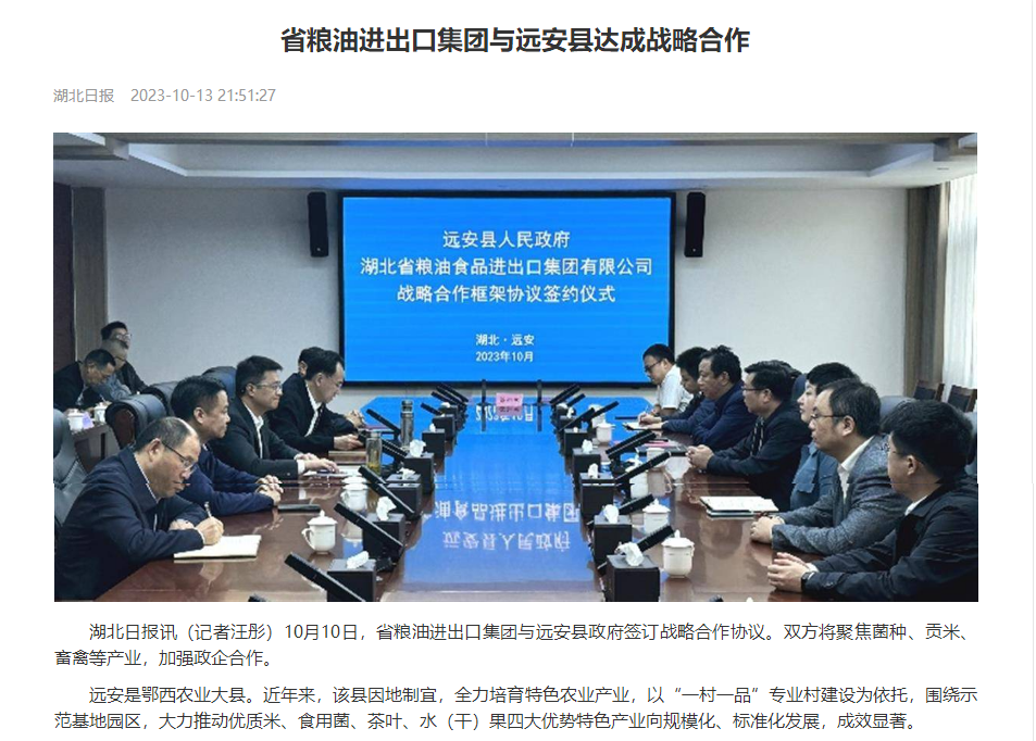湖北日報:省糧油進出口集團與遠安縣達成戰略合作