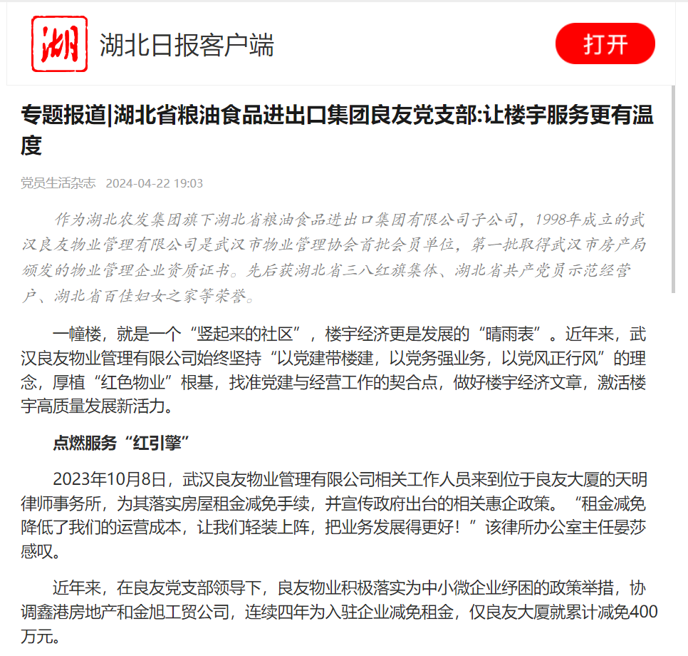 湖北日報:專題報道|湖北省糧油食品進出口集團良友黨支部:讓樓宇服務(wù)更有溫度