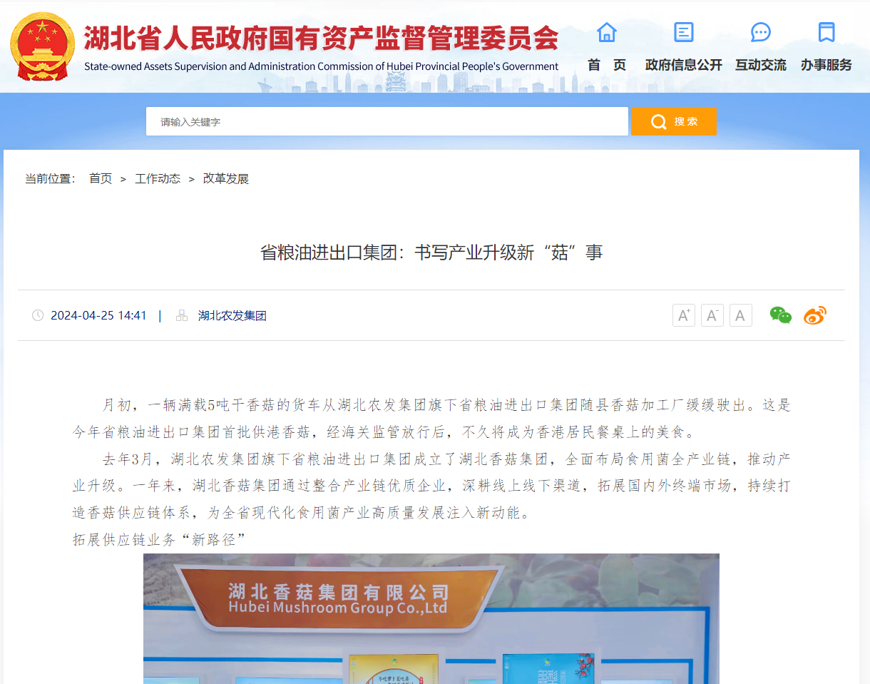 湖北省國資委:省糧油進出口集團書寫產(chǎn)業(yè)升級新“菇”事