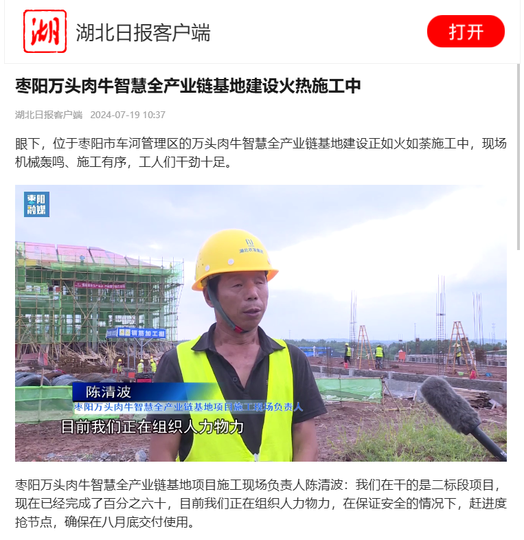 湖北日報:棗陽萬頭肉牛智慧全產業鏈基地建設火熱施工中