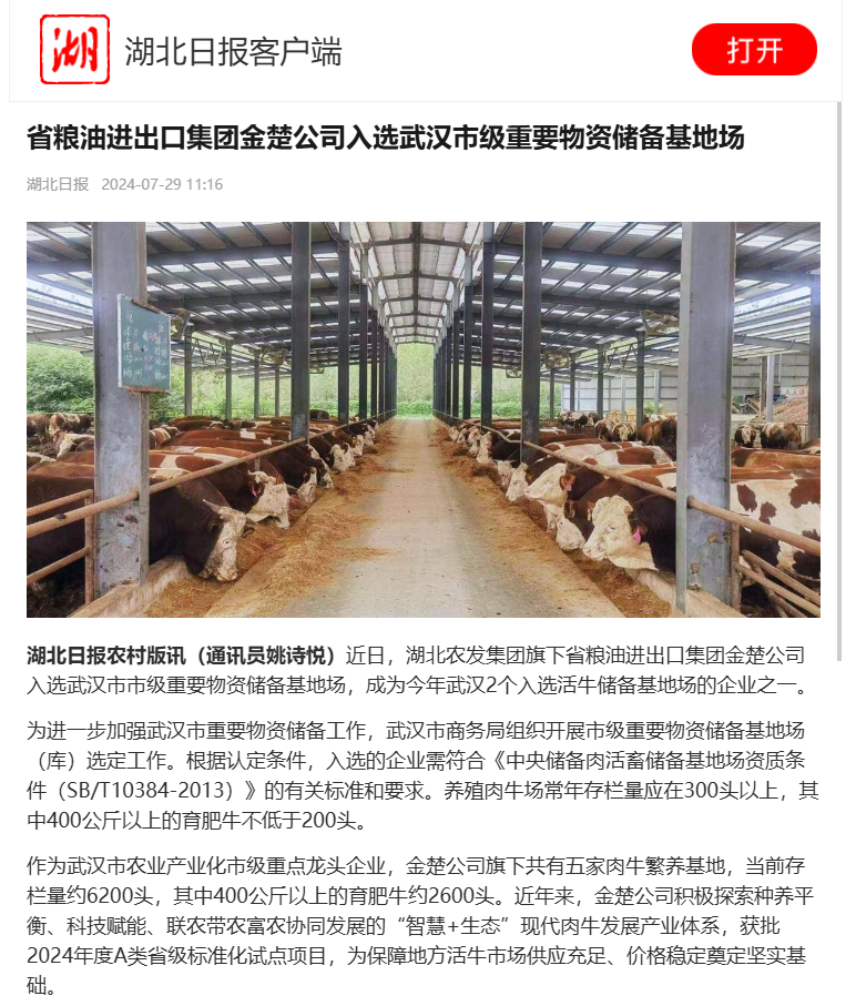 湖北日報:省糧油進出口集團金楚公司入選武漢市級重要物資儲備基地場